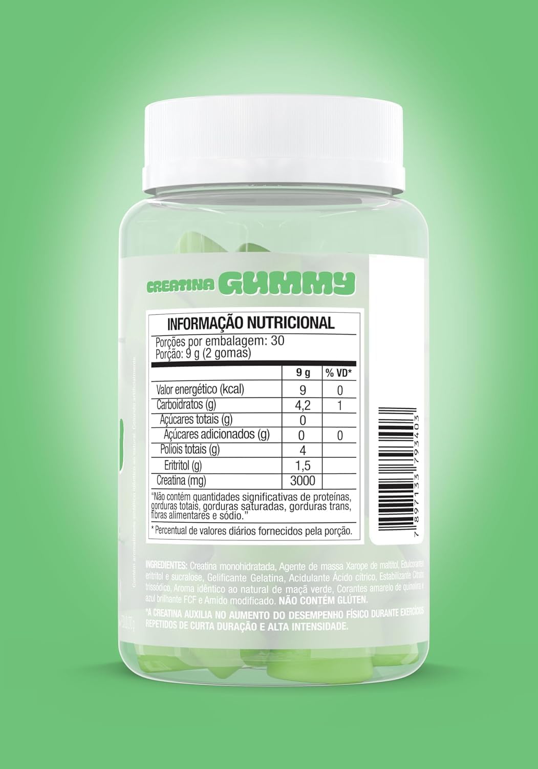 Diga adeus ao pó e às misturas! Experimente a creatina em gummies sabor maça verde: cada unidade traz 3g de creatina monohidratada de alta qualidade para turbinar sua força, energia e recuperação muscular. Praticidade, eficiência e um sabor irresistível para transformar seus treinos em momentos ainda mais gostosos